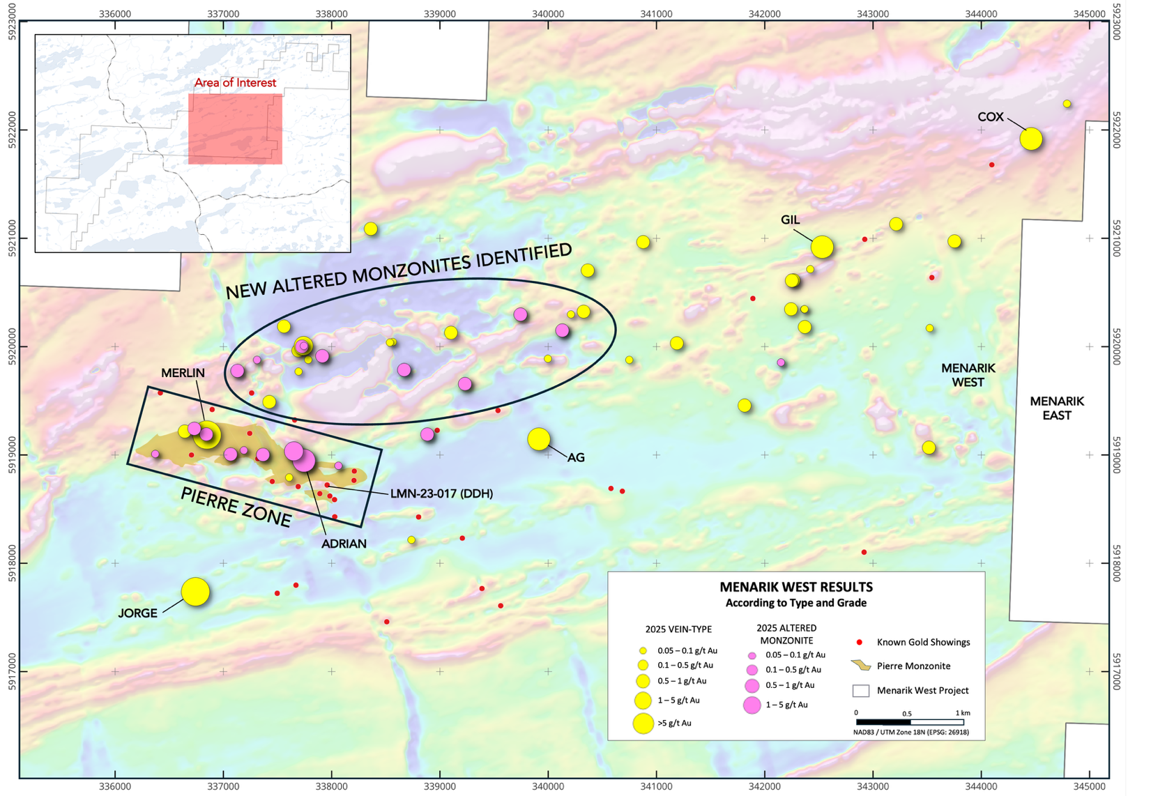 Figure 2. Résultats analytiques sélectionnés du programme d’exploration estival 2025 à Menarik Ouest.